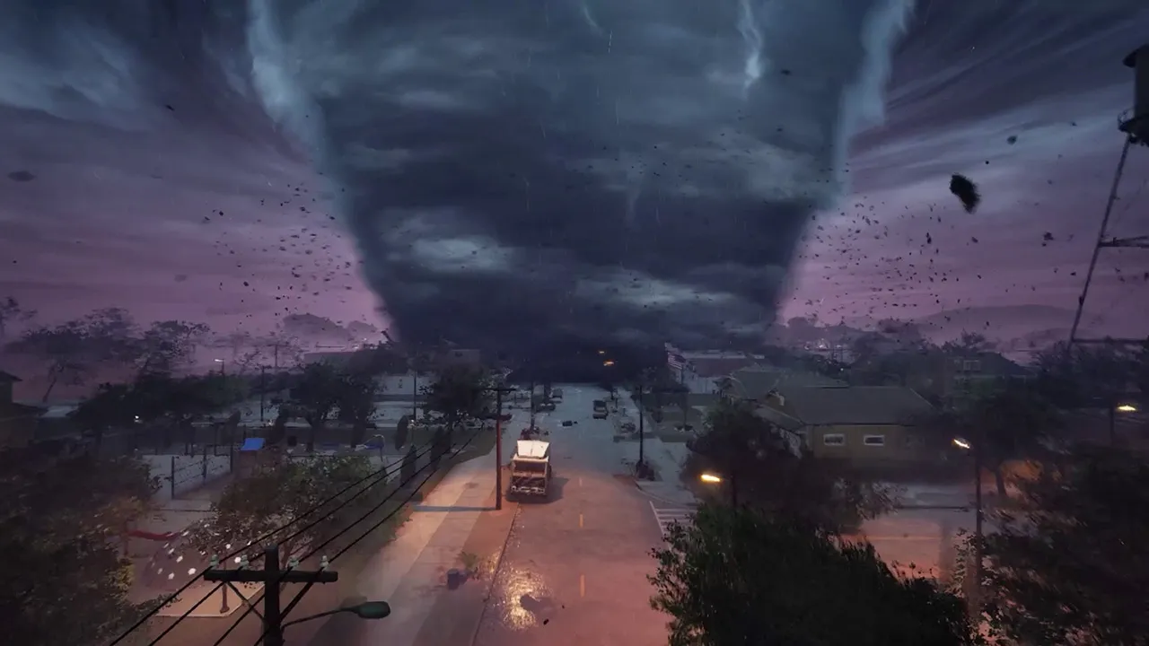 Tornadoes spawn randomly and escalate over time, building toward a nightmare F5. The map is fully destructible — houses crumble piece by piece, loot disappears from flattened zones, and powerful winds can literally suck players into the funnel. Every run is different thanks to randomized weather, item spawns, environments, and van repair problems.